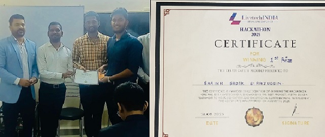 We are extremely happy to share that Mst. Sadik Sirajuddin Shaikh a final year student of the Computer Engineering Department A. R. Kalsekar Polytechnic has secured the First Position in the LivetechINDIA Hackathon 2025 for showcasing the Best Project during his Internship. 🏆 He has also been awarded a cash prize of ₹8000/- along with a certificate of achievement. 👏 Heartiest congratulations to him on this proud achievement! 🎉