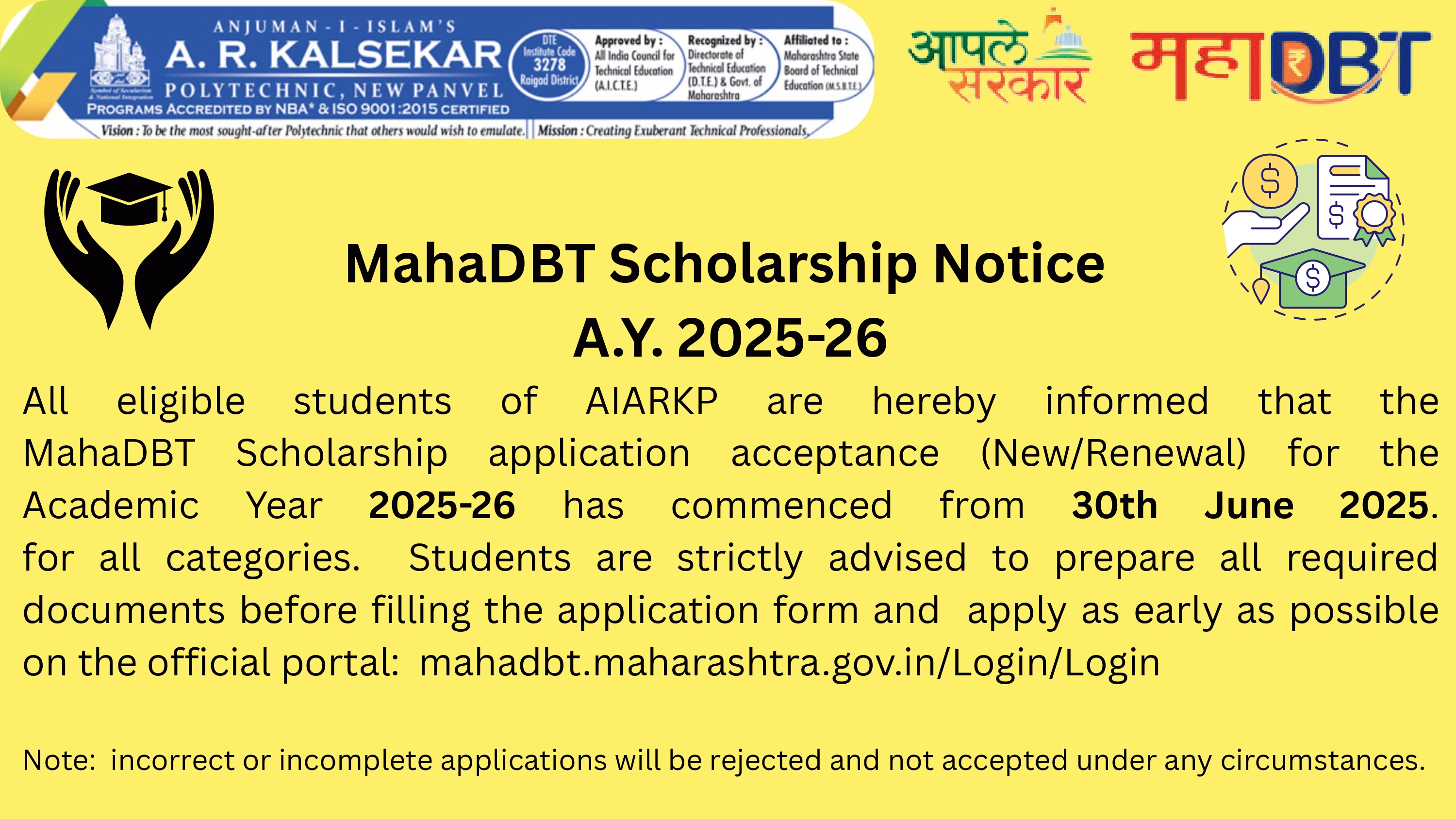 It is great pleasure to welcome each one of you to Aniuman-I-Islams Abdul Razzak Kalsekar Polytechnic. This institute belongs to you. This NBA Accredited institute dedicated towards students-centric programs.