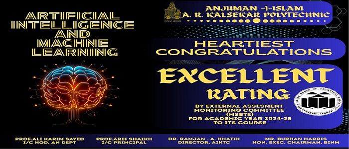 🎉 We are delighted to share that the MSBTE External Monitoring Committee has awarded an Excellent Rating to our Artificial Intelligence & Machine Learning (AIML) and Civil Engineering Diploma programs for the academic year 2024–2025. 👏 Congratulations to the Management Principal Faculty and Staff of AI A R Kalsekar Polytechnic New Panvel College for this remarkable achievement!