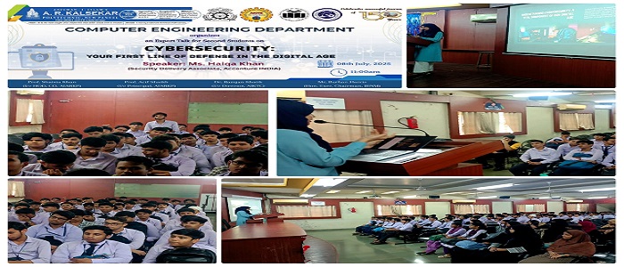 Expert Talk on Cyber security: Your First line of Defense in the Digital Age” conducted by Ms. Haiqa Khan who is currently working as a Security Delivery Associate at Accenture India. Organiser : Seminar Co-ordinator Ms. Alfiya Mulla (Lecturer CO DEPT)