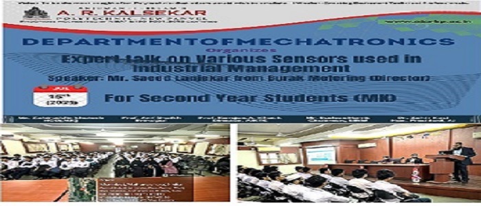 Expert talk on Various Sensors used in Industrial Management Speaker:Mr.saeed Lanjekar Director of Burak Metering (Alumni of ARKP)